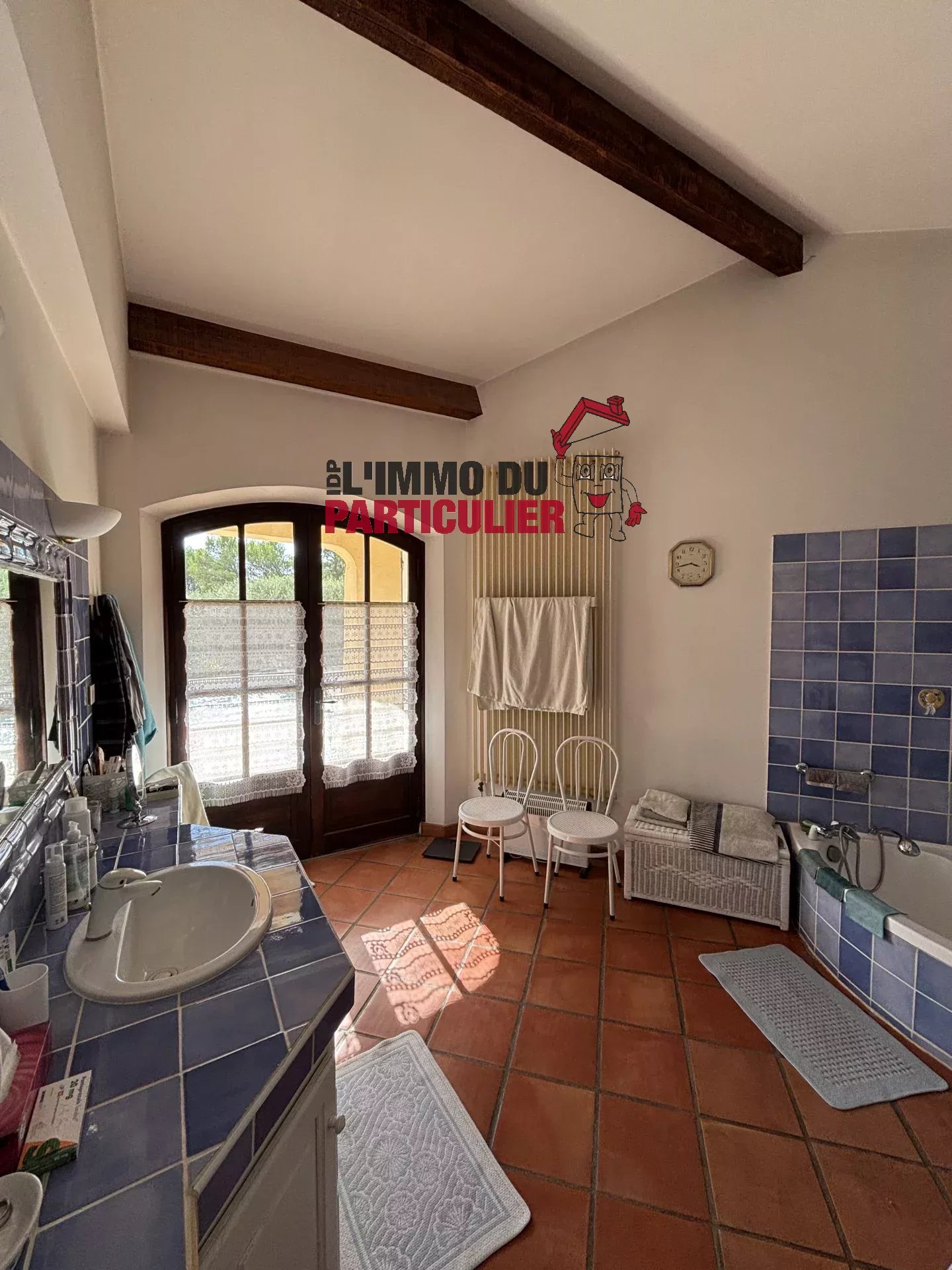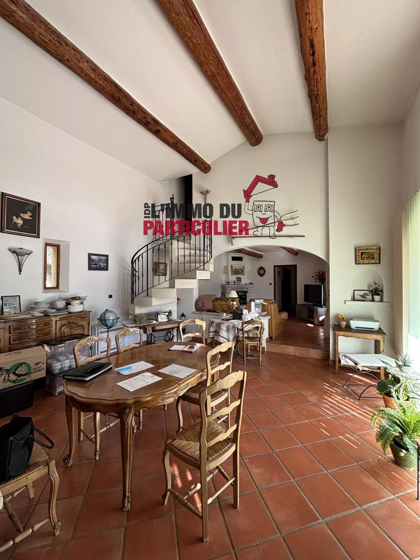 PEYPIN D'AIGUES - En campagne, dans environnement calme, belle maison de maçon, construite en 1990, environ 178m² habitables sur un terrain clôturé de 4340m². Entrée avec mezzanine, grande cuisine dinatoire ouverte sur une pièce de vie avec cheminée insert et plafond rampant, cellier, une grande chambre avec lavabo, douche et un wc, une autre chambre avec placards, salle de bain, wc séparés, à l'étage une chambre. Le sous-sol comprend un garage, un cellier/buanderie, chaufferie. Toutes les pièces de la maison ont un accès extérieur grâce à des portes fenêtres, une grande terrasse carrelée entoure la piscine traditionnelle plein sud. Un hangar et des chenils complètent ce bien. HAVRE DE PAIX POUR AMOUREUX DU CALME!!! Mdt 1733 - 689 000€ L'Immo du Particulier.